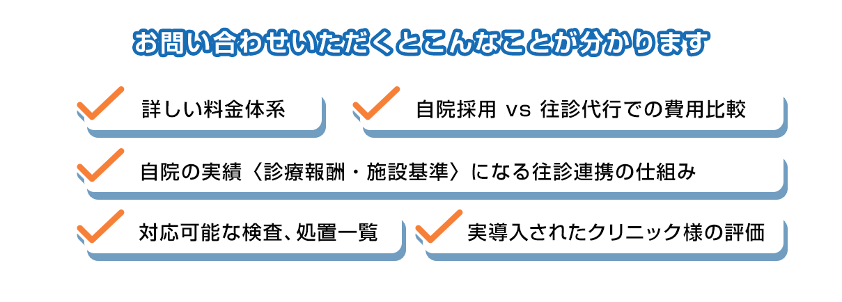 ファストドクターでは、 夜間休日のオンコールから往診までワンストップ対応。日中との分業体制をとることで、夜間休日の応需体制にまつわる様々な課題を一気に解消することができます!